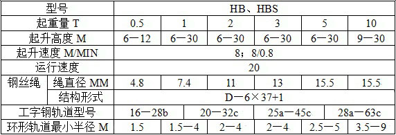 HB、HBS型防爆電動(dòng)葫蘆產(chǎn)品參數(shù):